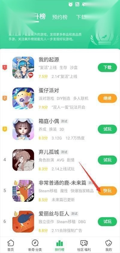 1、找到想要玩的游戏,点击右边的“快玩”按钮。