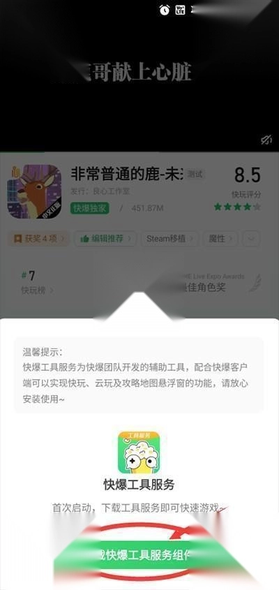 3、接下来因为是第一次玩这个游戏,或许需要快爆工具的服务组件。