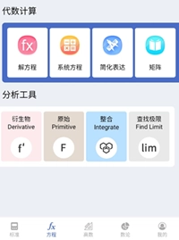 切换到方程页面,我们可以使用代数计算和分析工具。