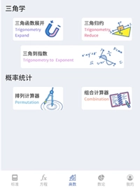 进入高等数学页面后,我们可以使用其中的三角学以及概率统计相关功能进行操作。