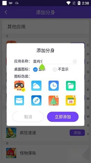 给新分身设置一个名称,还能挑选不同的图标来进行伪装,从而提升隐蔽性。