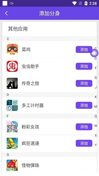接下来,请从列表里挑选您想要添加分身的应用,像“菜鸡”这类都可以。