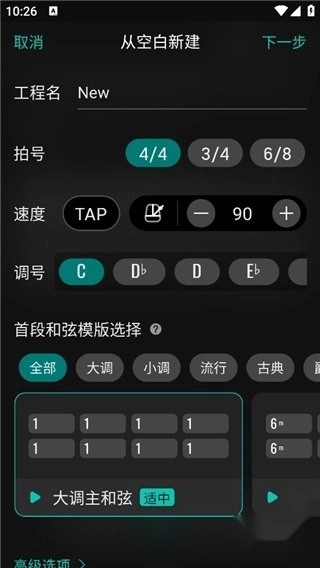 根据个人偏好的音乐风格调整参数,启用AI智能编曲功能。