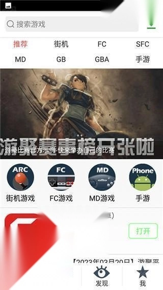 2、进入首页后,界面呈现如下,能看到街机游戏、fc游戏、md游戏等各类游戏。
