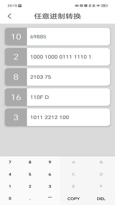 3、只需输入待转换进制的数值,点击对应的进制按键,就能获取相应的转换结果。