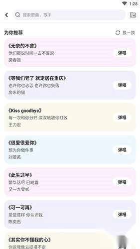 启动应用后,轻点底部导航栏的“弹唱”功能入口,就能进入歌曲搜索界面。