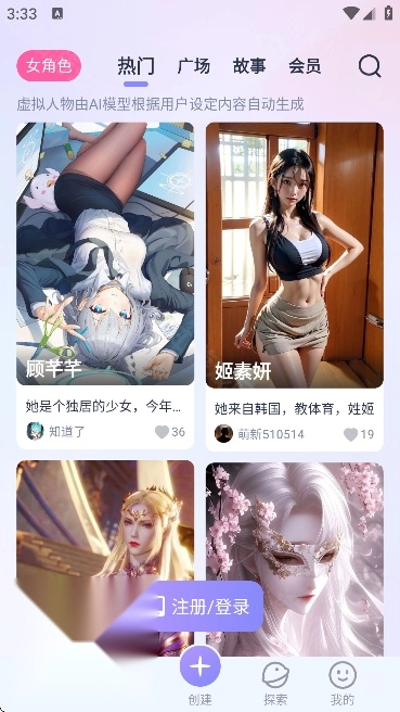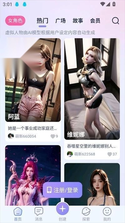 4、用户可自由选择角色畅聊,或创建专属AI伙伴,体验感很不错的。