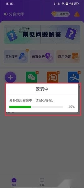 1、支持微信、QQ、淘宝等众多主流应用的多开。