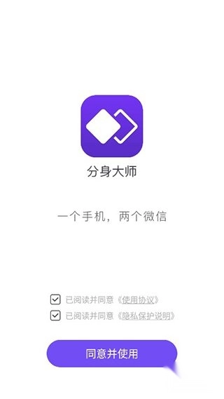 1、首先打开分身大师。进入软件后,需阅读并同意用户协议方可使用。