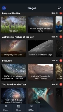 海量图像资源:应用程序了超过 21,000 张最新的 NASA 图像,用户可以轻松查看并欣赏这些珍贵的宇宙照片。同时,用户还可以对图像进行评分,并探索所有评分最高的图像,发现更多隐藏的宇宙之美。