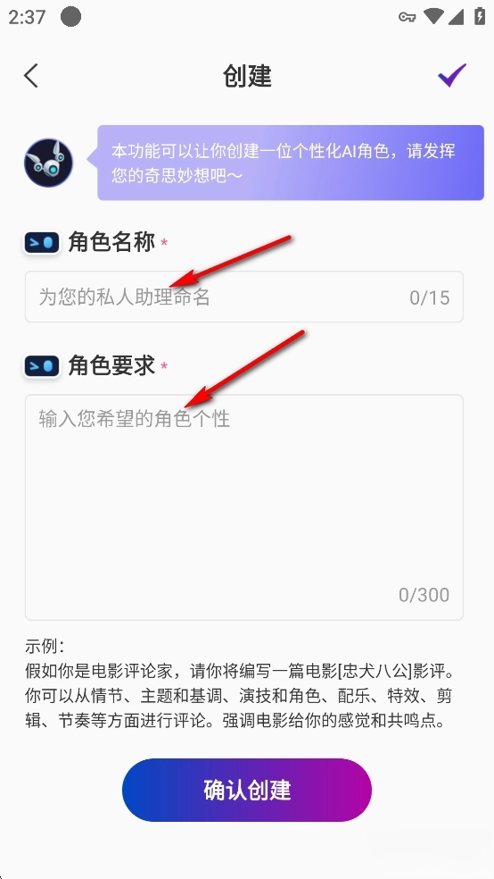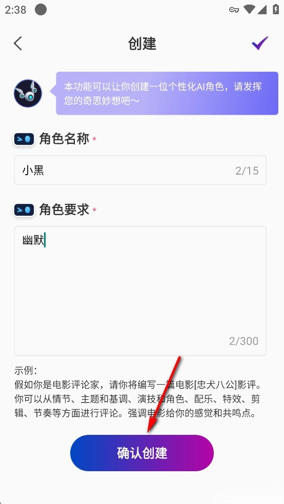 输入名字和角色性格