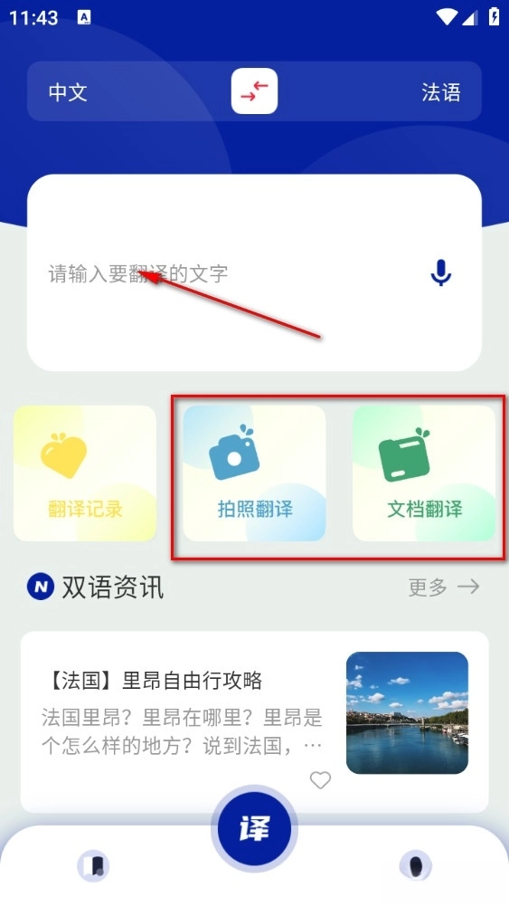 支持中文与法文文档的双向互译功能,可上传PDF、Word等多种格式的文件,通过一键智能翻译操作,译文能够直接保存至本地,有效打通中法双语文档之间的沟通壁垒。