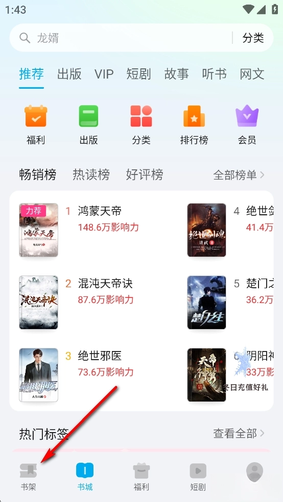 进入软件后点击【书架】