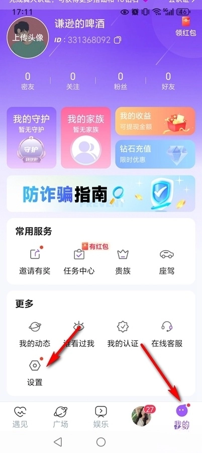 点击【我的】-【设置】