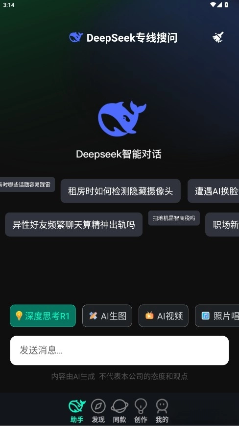 在助手页面,您可以输入问题,DeepSeek助手会迅速为您解答。