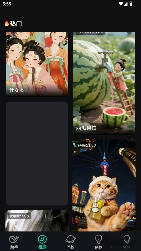 进入同款页面,就能浏览各类绘画与视频作品,直接一键套用同款便能快速完成创作