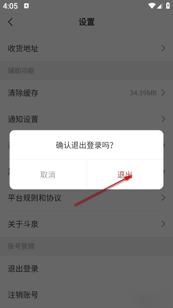 然后选择退出登录