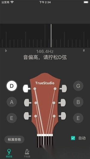 3. 当弹拨某根弦时,会识别当前正在弹拨的弦,并指示出弦偏高还是偏低。根据提示依次调各个弦。