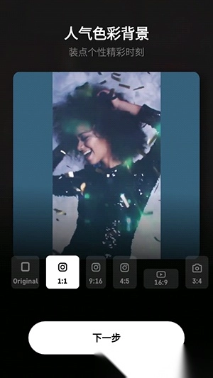 尺寸裁剪:将比例调整为任意尺寸,在 Instagram、IGTV、YouTube、Facebook、Twitter、抖音等分享您的创意。