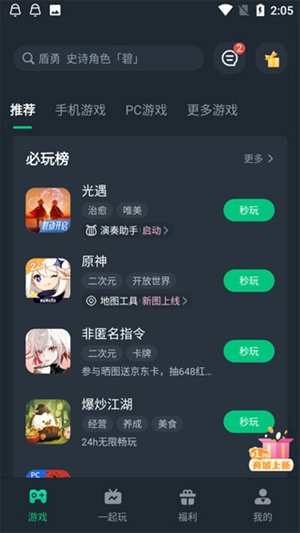 2、在这里找到自己想要玩的游戏并点击【秒玩】;