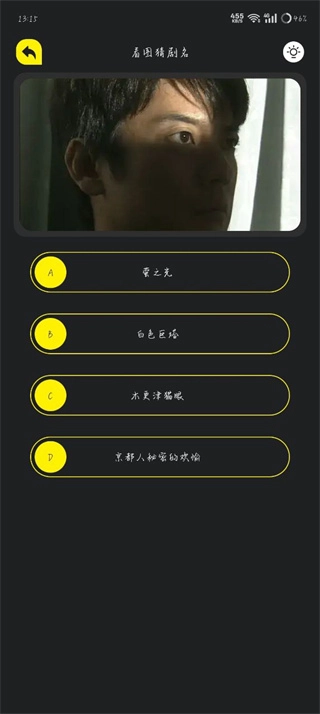 2、点击“看图猜剧名”后,就能依据下方给出的选项来进行解答,另外还可以点击右上角的按键获取提示。