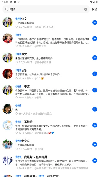 4、输入内容后就会显示所有对应你好字眼的消息和智能体。