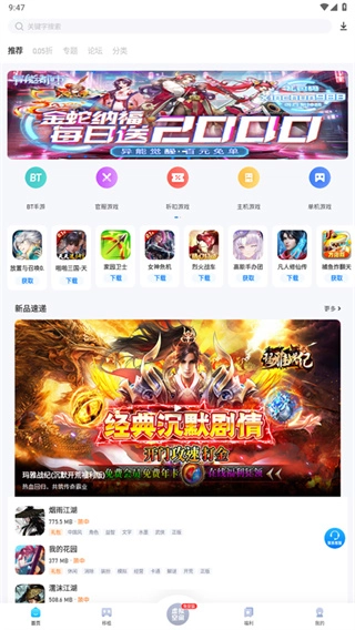 3、妹纸清晰明了地游戏分类标签,例如特色分类、精品、网游福利等,方便用户快速找到目标游戏。