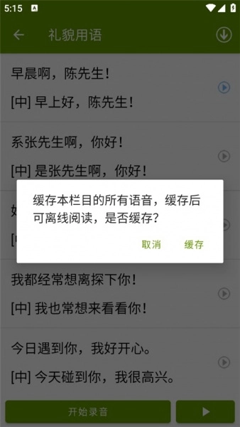 用户可以在在线状态下缓存语音,之后在离线模式下进行播放,保障在无网络的情况下也能进行学习。