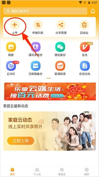 :真正的云加速,全新的界面更新,不会泄露隐私,凭借庞大的存储空间和精心为用户打造的云服务产品。然后打开联通云盘,进入主界面后找到“上传”选项并点击选择。