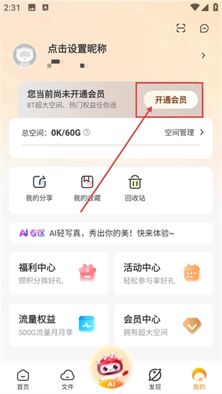 进入个人中心后,点击【开通会员】按钮,即可跳转至会员开通详情页面,解锁更多权益。