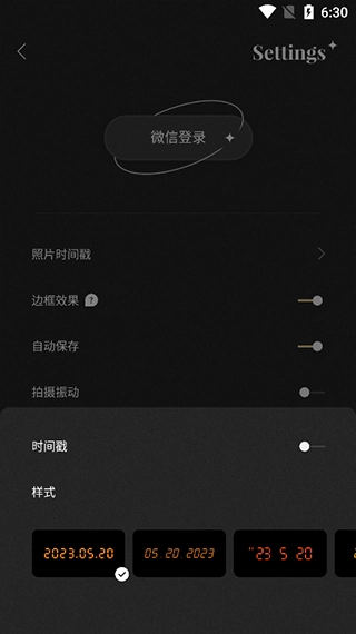 还可以选择时间戳样式在拍照时增加时间