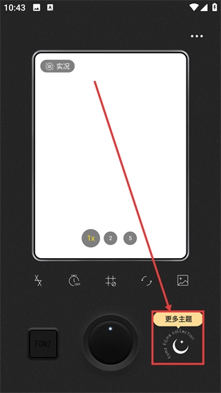 在相机界面点击【更多主题】按钮,即可打开主题选择面板,浏览各类相机风格主题。