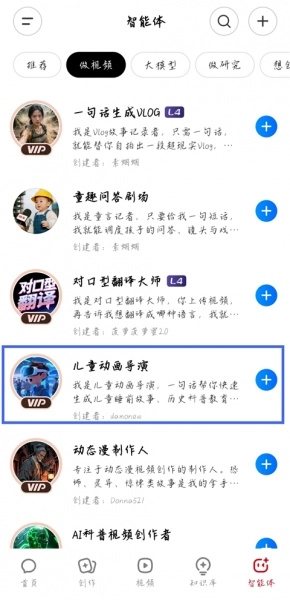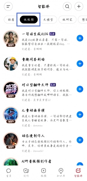 2、点击【做视频】选项,再依据视频类型从中挑选对应的智能体。