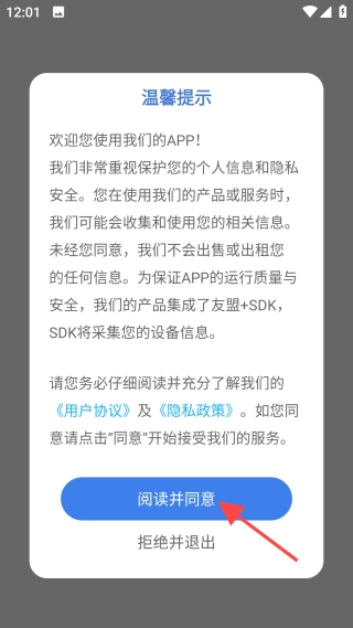 安装完成后,请查看“温馨提示”,然后点击【阅读并同意】按钮。