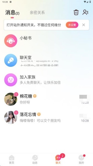 1、当有新消息时,软件会第一时间推送提醒,不管你在哪里,都能及时收到附近好友的问候或者聊天信息。