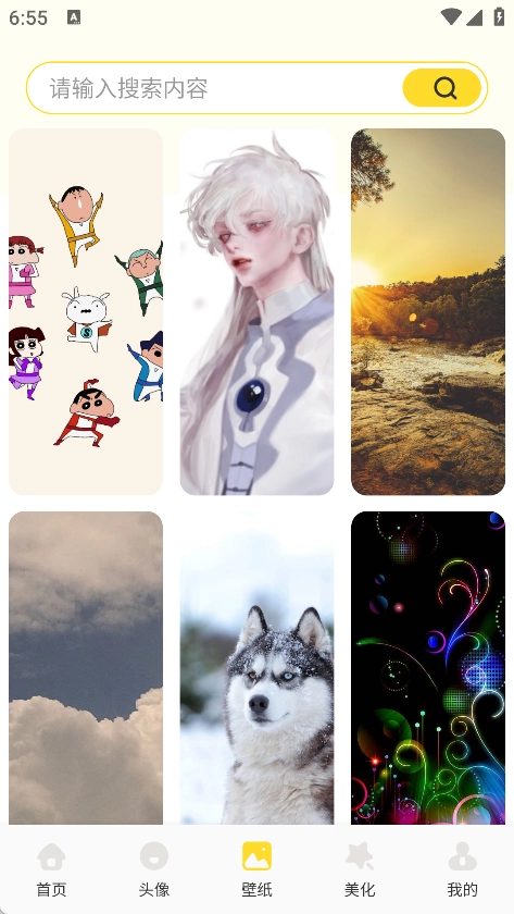 壁纸页面里有特别多漂亮的壁纸,而且还能实时搜索各种不同的内容。