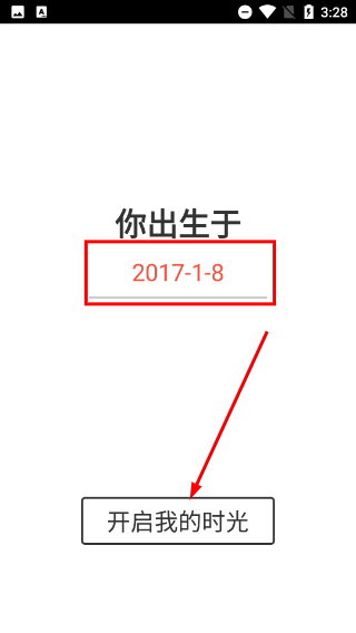 1、在出生日期填写页面,确认好出生时间(例如2017-1-8)后,点击【开启我的时光】按钮,即可进入时光记录的主界面。