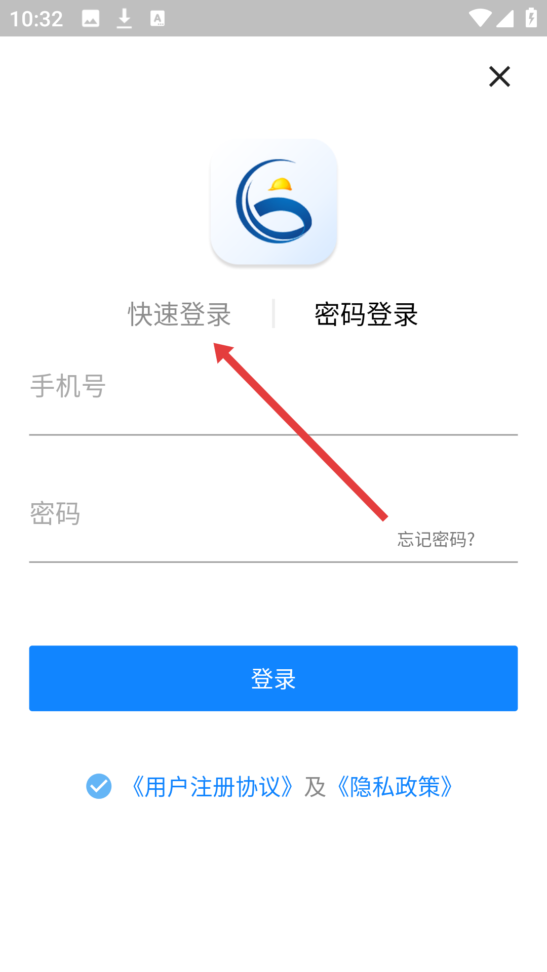 3、在登录页面选择【快速登录】切换登录模式。