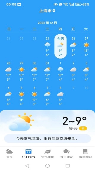 15日天气准报是一款提供本地温度、空气质量等多类信息的天气预报应用,支持快速定位与城市管理功能同步查看,帮助用户及时获取各地天气资讯,同时呈现生活指南,可直接参考以了解不同气温下穿衣、出行的注意事项。