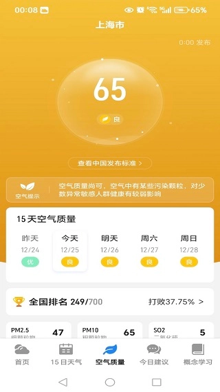 在今日建议页面,大家可以浏览穿衣等贴心指南。