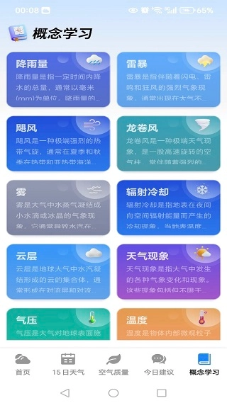 还能通过概念学习页面的资讯,掌握更多天气知识。