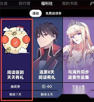 通过阅读站内任意作品即可完成自动签到,签到详情可前往福利社查看。需要注意的是,新人福利仅对注册7天内的用户开放;从注册第8天起,阅读站内作品仍可自动签到,届时签到情况可在左上角消息中心和福利社两处查看。
