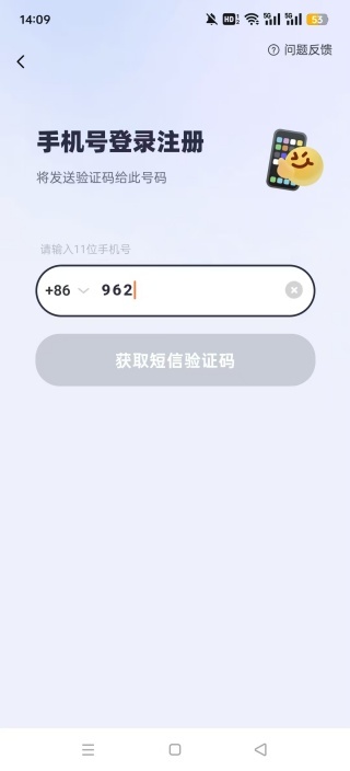 1、安装后点击注册账号,选择用手机号注册,填写手机号并获取验证码