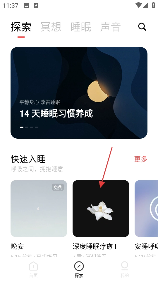 进入探索页面后,选择深度睡眠疗愈Ⅰ。