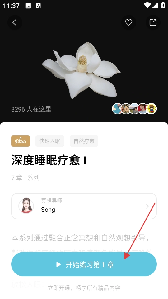 进入深度睡眠疗愈Ⅰ页面,点击开始练习第1章。
