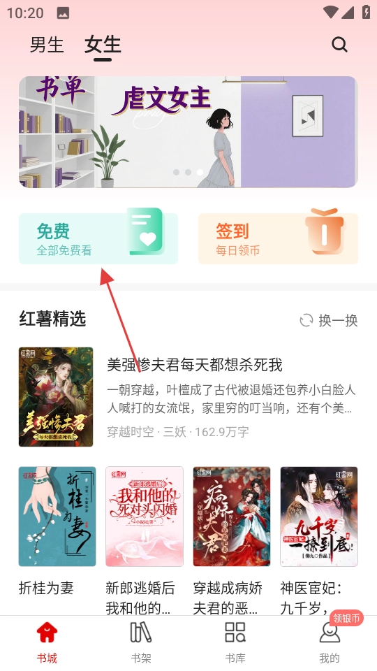 点击页面上的免费按钮,进入免费书库页面。