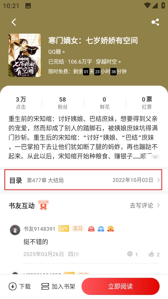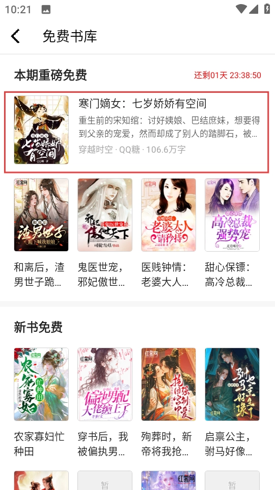 在免费书库页面,选择喜欢的书籍,点击进入。
