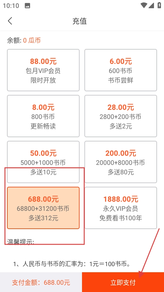 你可以在充值页面挑选好想要充值的金额,接着点击“立即支付”按钮,这样就能完成支付流程了。
