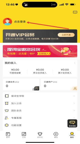 在个人页面,随后点击登录,进入提词宝登录页面。