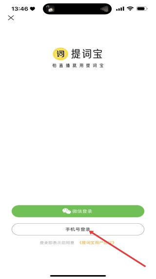 在提词宝的登录界面,选择手机号登录选项,即可跳转至对应的手机号登录页面。